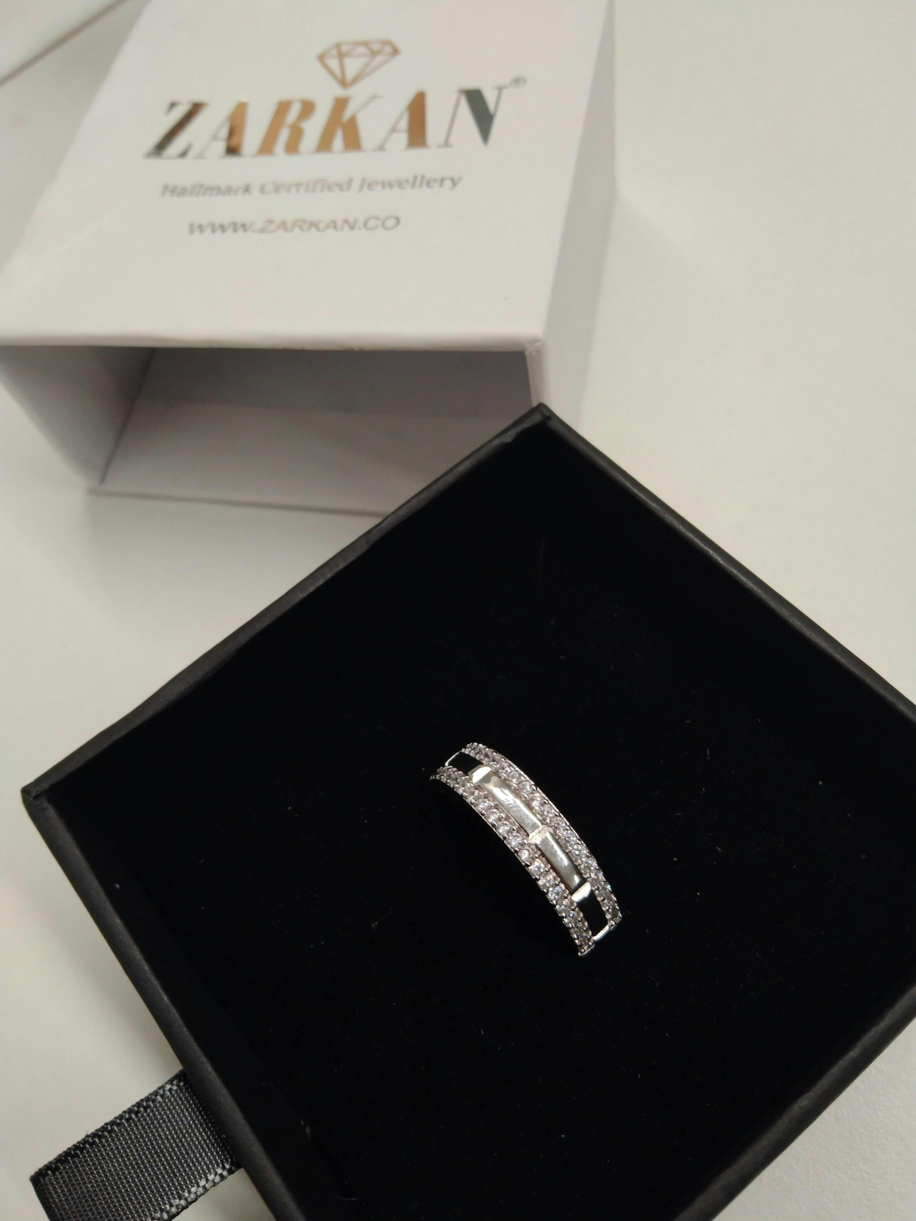 Hallmarked Men's Elegant Silver Ring With Classic Diamond