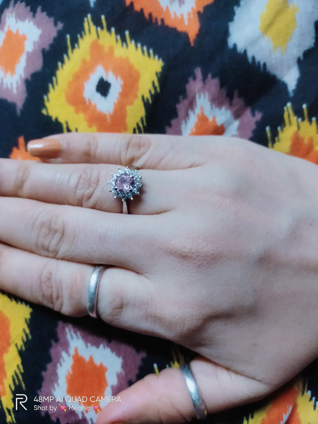 This classic pink flower shaped crystal ring is the perfect combination of modern and rustic. Constructed of 925 silver, this adjustable ring ensures a comfortable fit and sparkling design no matter the size. Show off your style with this unique and elegant statement piece.
